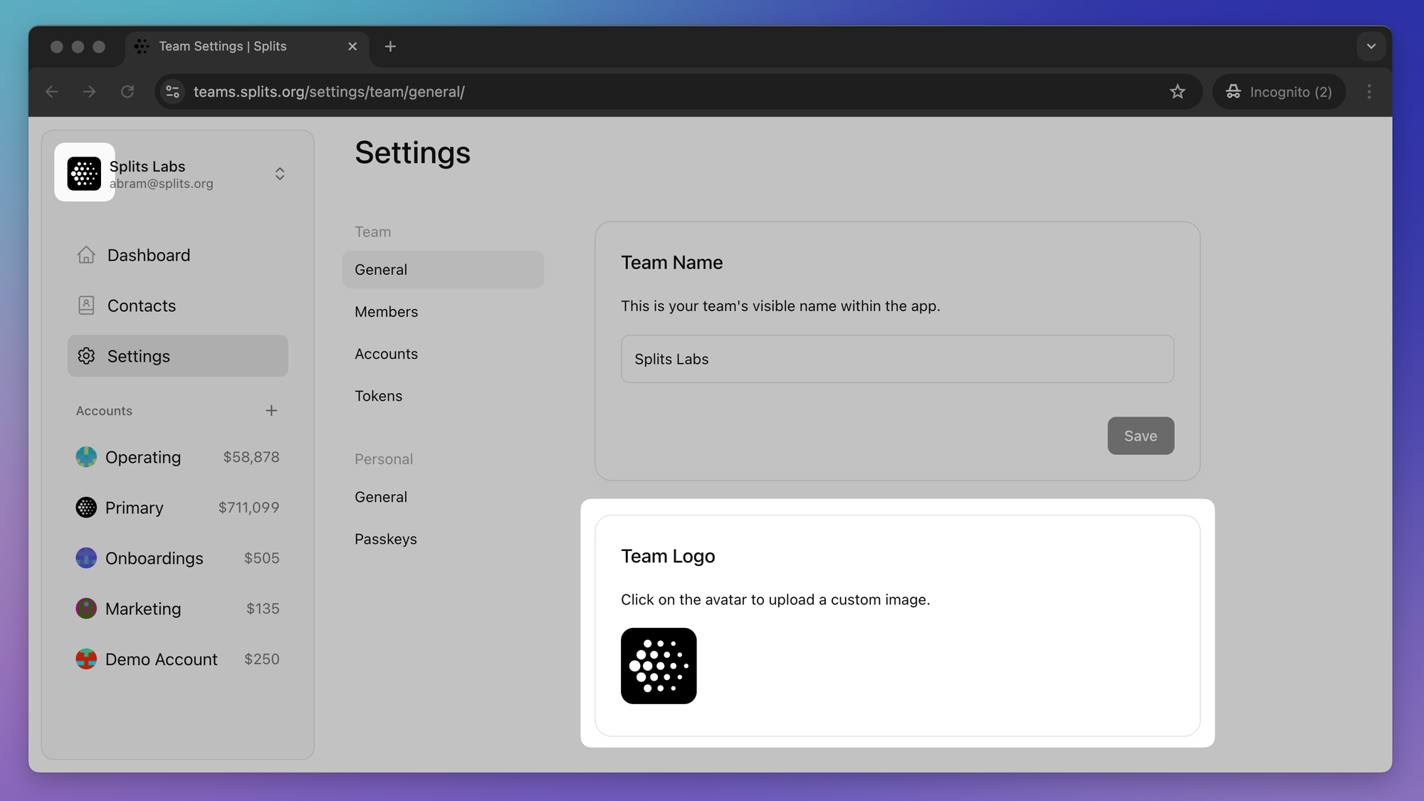 You can now add a team logo for your workspace, and an avatar and display name for your personal account. We also separated out the settings sections into subpages, making it easier to navigate and find related settings.
