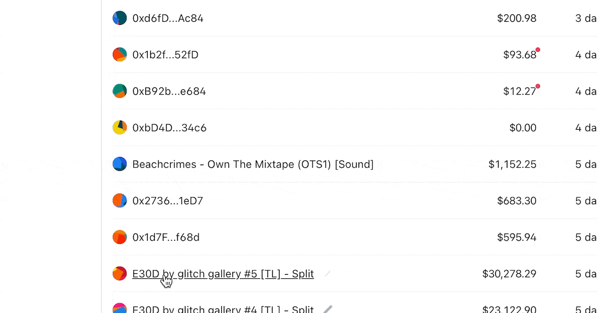 The introduction of named Splits is just the beginning of an entirely new app experience we're building. We're doubling down on the inherently social nature of Splits by making tracking and reporting on earnings across wallets, networks, and teams considerably easier.