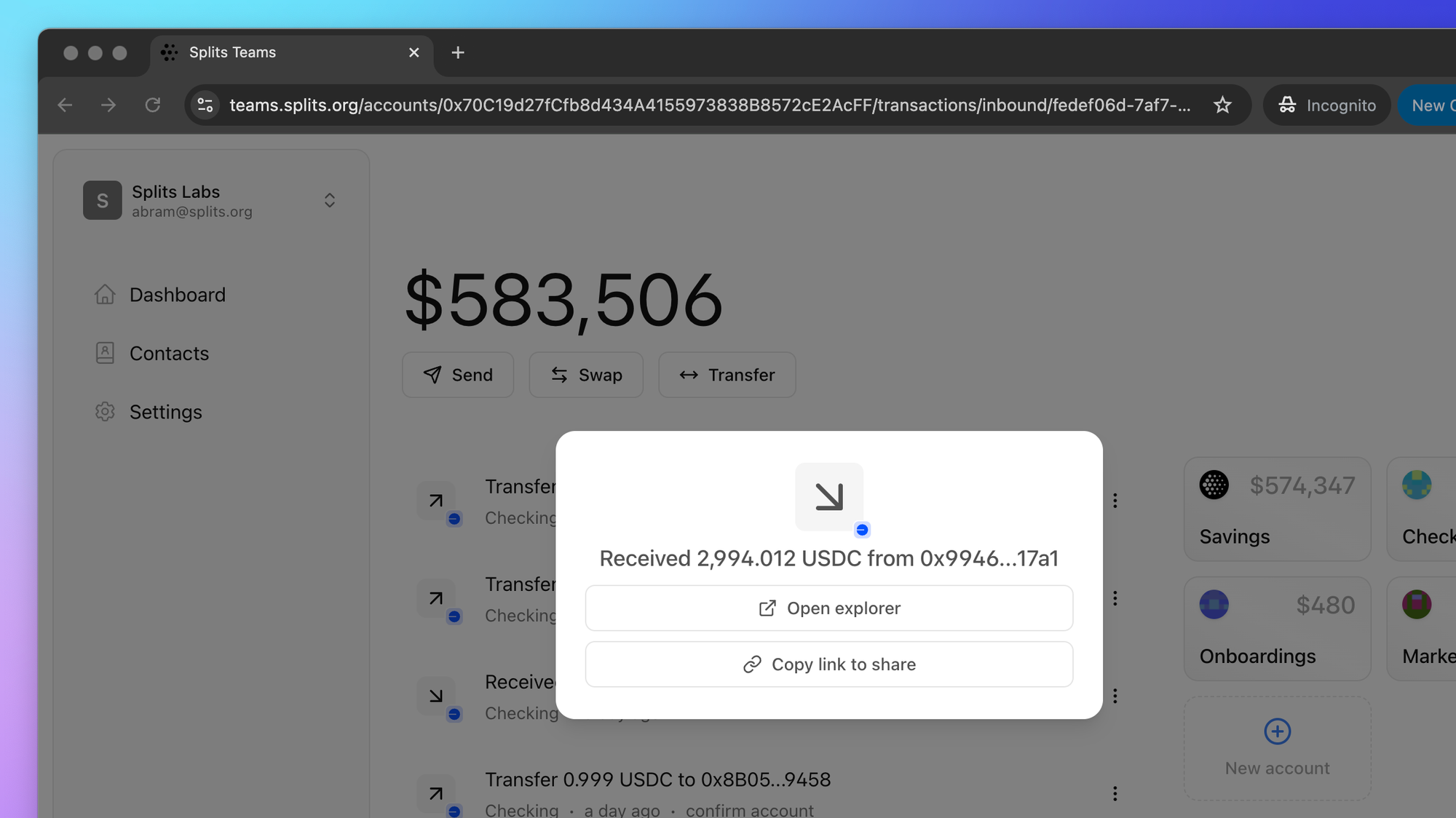 You can now see inbound transfers for all of your accounts. We know that legibility of your finances and operations is key, and being able to see inbound transfers is an important part of this.