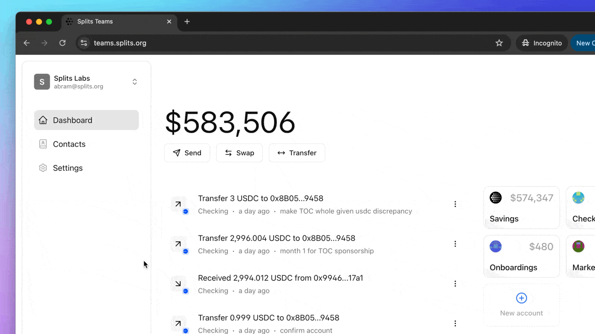 You can now send, swap, and transfer assets directly from your dashboard view. Previously, you had to navigate to an account view and then choose to take action. Now you can do that much faster—right from the dashboard.