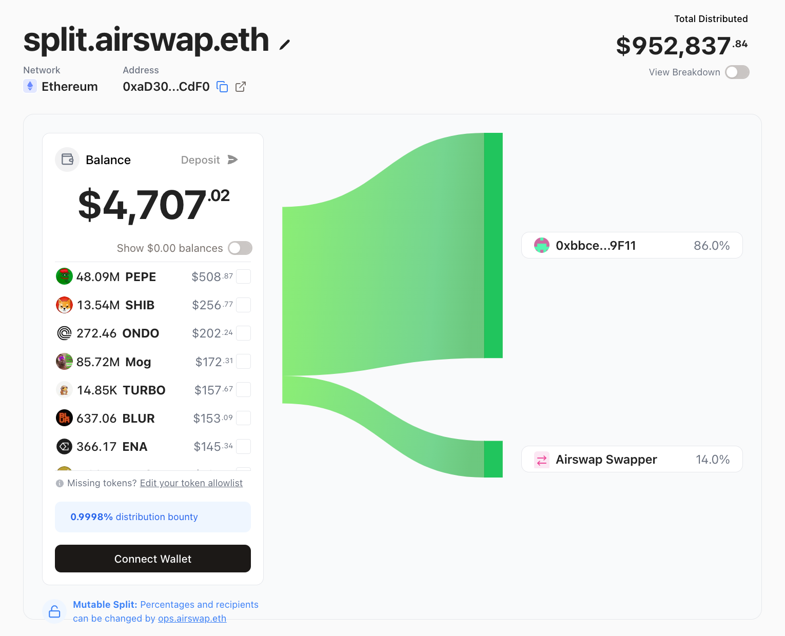 - 86% goes to the rewards pool for active DAO members, who stake AST and vote on AirSwap Improvement Proposals.