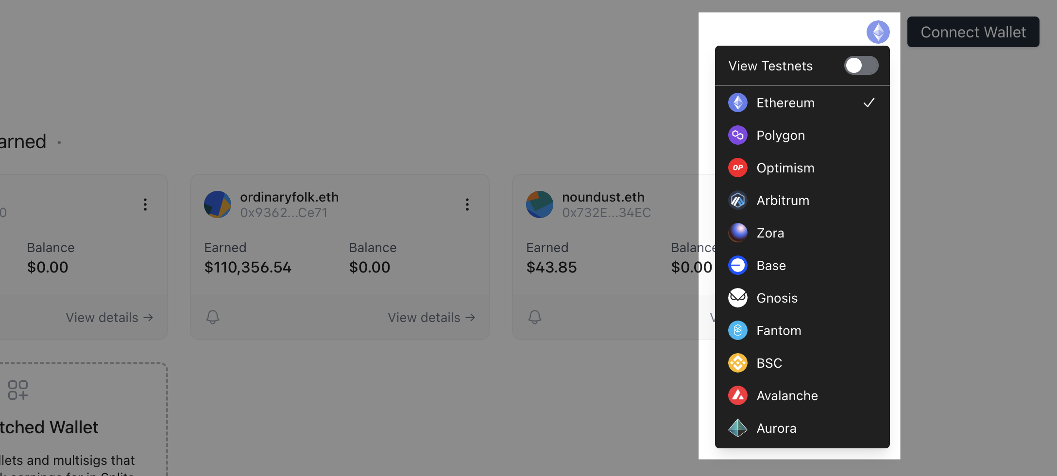 You can also hit the "view testnets" toggle to view only the test networks Splits is deployed on.