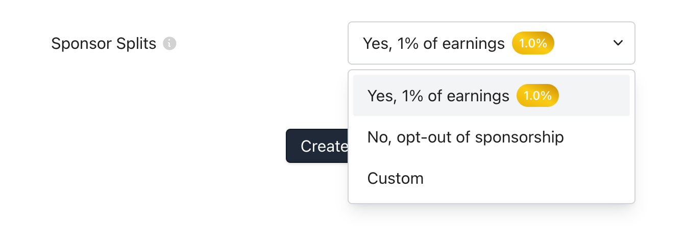 We're grateful for the folks who have chosen to donate a portion of their Split's earnings back to the team building Splits. It's an honor knowing that people are choosing to pay us—not because they have to, but because they want to. We want to both celebrate the people who have chosen to donate, and also make it easier to donate. Now, the last part of creating a new Split is deciding whether you want to become a sponsor.