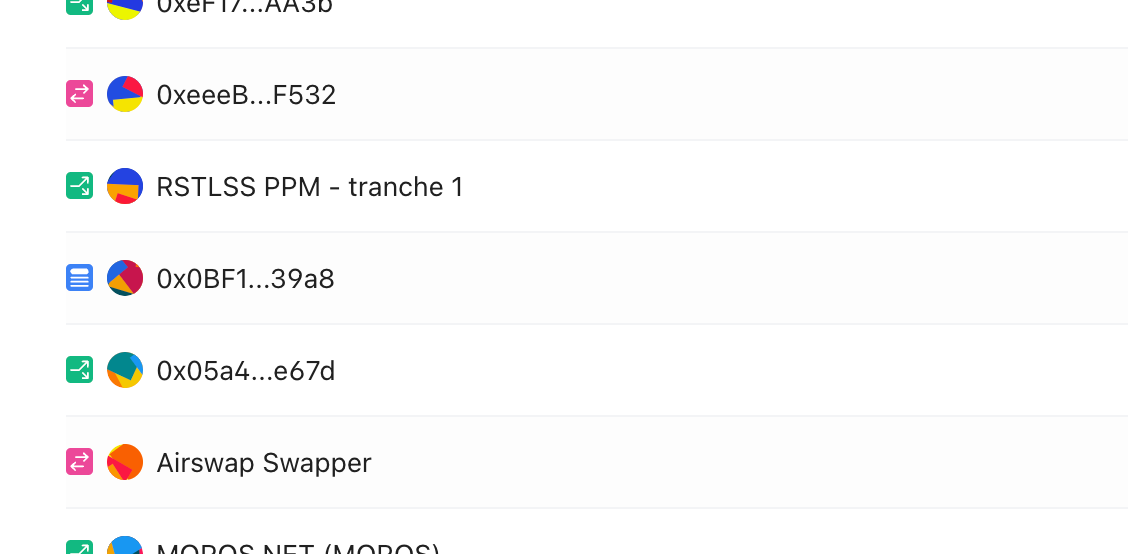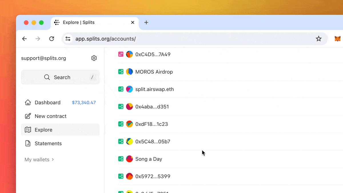 When you hover over an address in the app, a preview of the account appears. This includes the network, contract details (like number of recipients for Splits, output token for Swappers, etc), and total earnings or volume within Splits. Try it on desktop here.