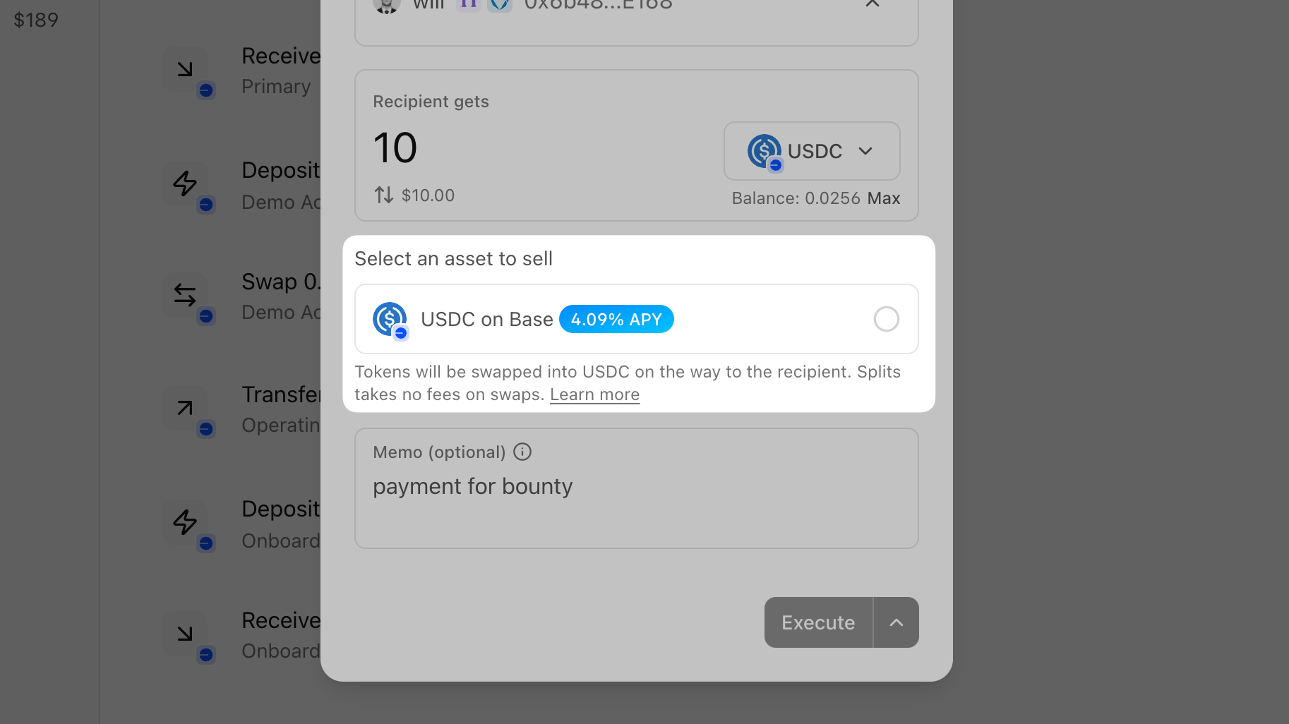For those earning yield on their assets in Teams, we now offer the ability to use your yield position while sending funds. Just select your position as the asset to sell during the send flow, and funds will be withdrawn and swapped on the way to the recipient. Note this is currently behind a feature flag while we work out any issues, so please reach out if you'd like to test this.