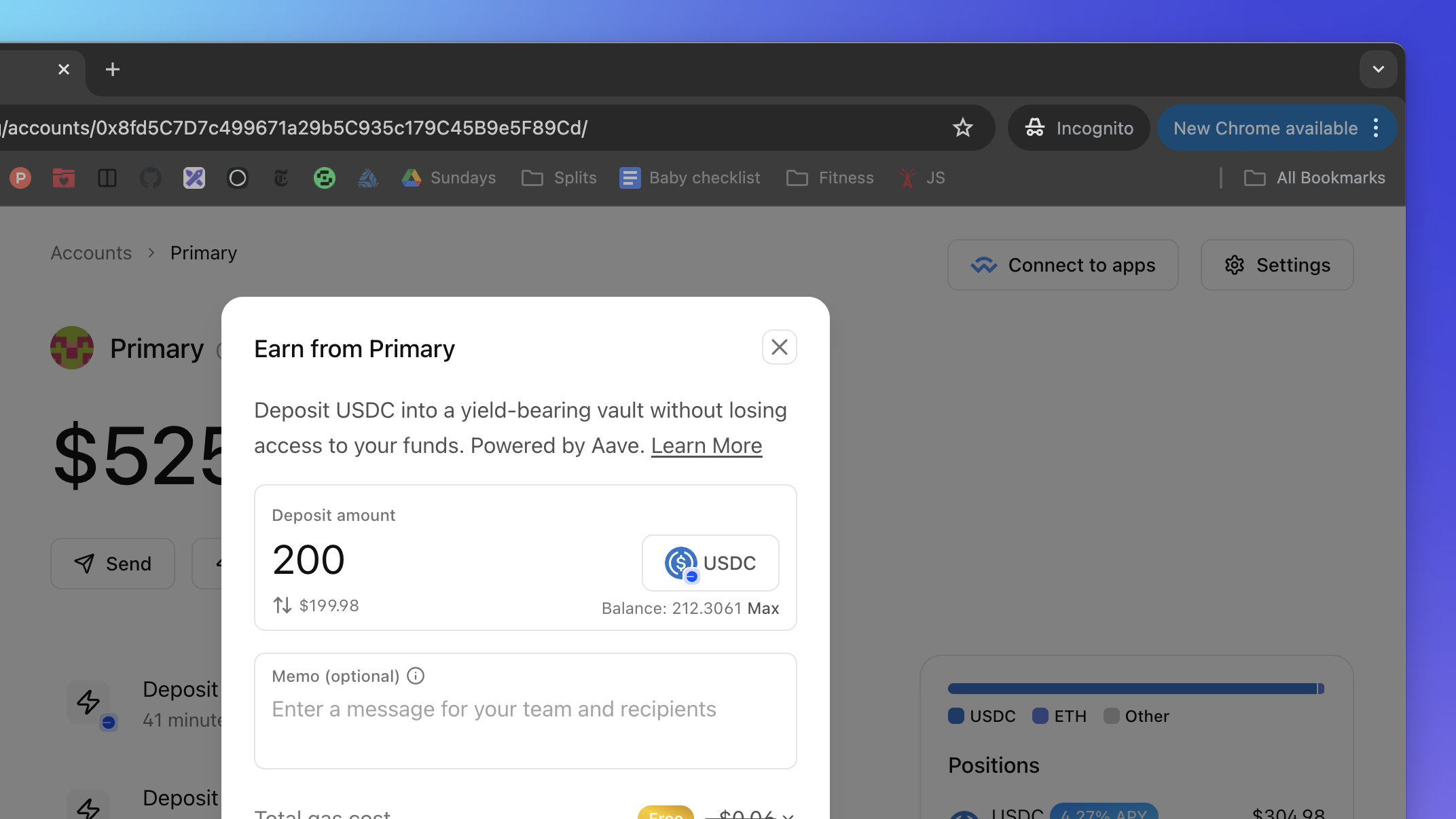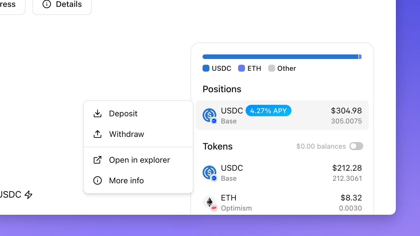 Integrated into Teams, it simplifies earning yield by eliminating the need for external apps or wallet connections. With just a few clicks, you can seamlessly deposit and withdraw, making onchain yield easy, accessible, and safe. All without compromising on self-custody.
