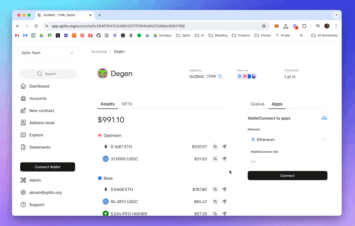 You can now swap tokens directly within a smart account. No need to connect your account to a third party app to perform the swap. And no need to pre-approve each token, since ERC20s are natively batched into a single transaction thanks to smart accounts.